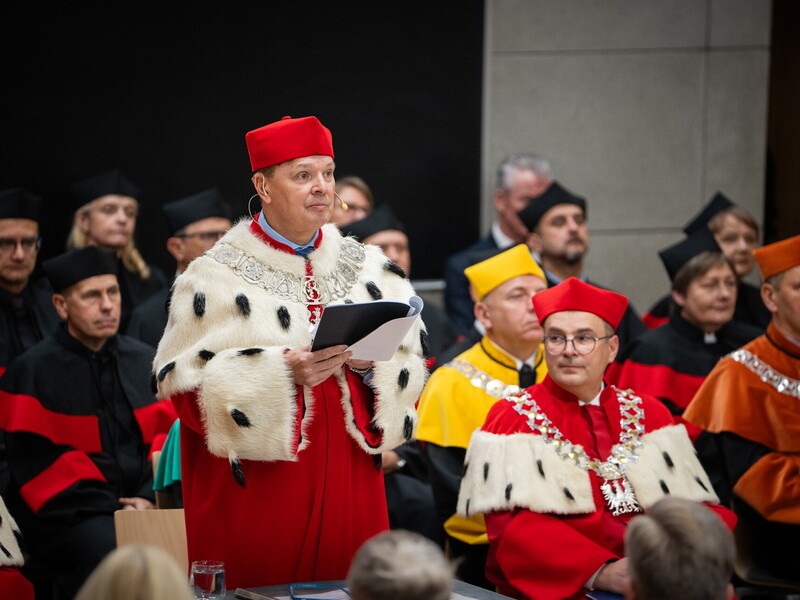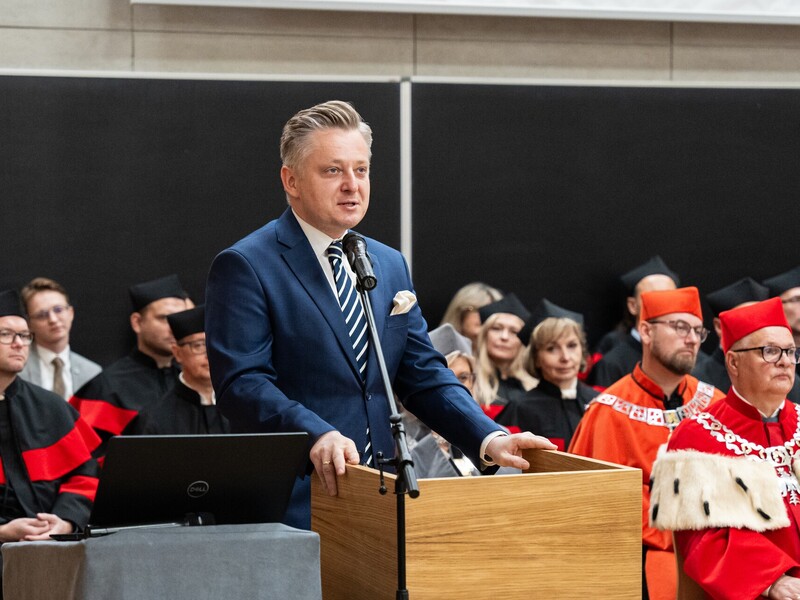 Wspomniał również o jednej z najważniejszych inwestycji ostatnich lat, zakończonym remoncie wszystkich czterech akademików. Prace trwały pięć lat, a ich koszt, wraz z kompleksowym wyposażeniem, przekroczył 80 milionów złotych. – To, co teraz wyróżnia nasze domy studenckie, to nie tylko odnowione wnętrza, ale przede wszystkim funkcjonalność i dbałość o potrzeby studentów – mówił rektor.