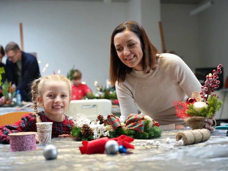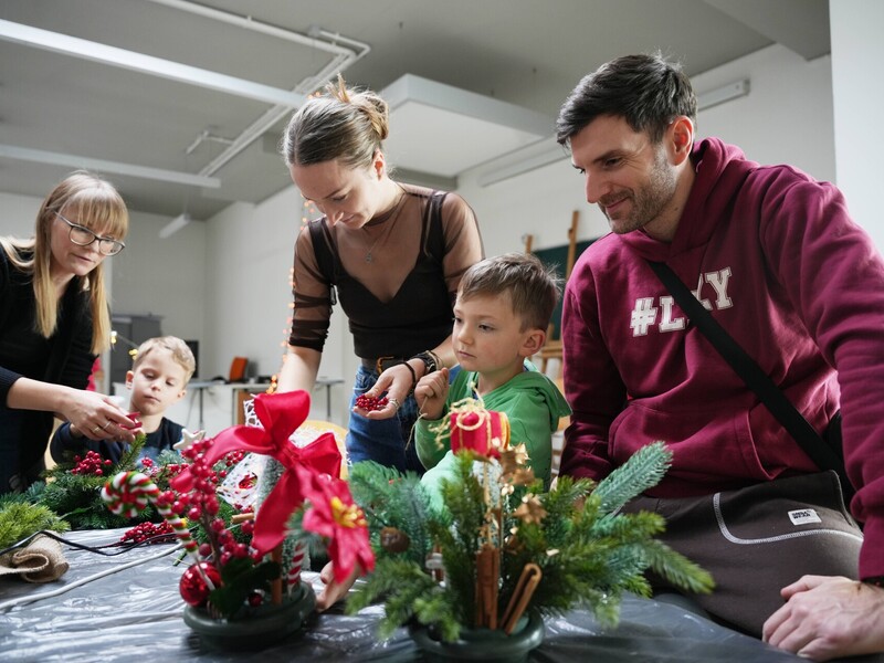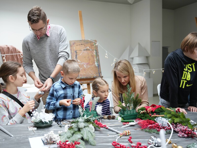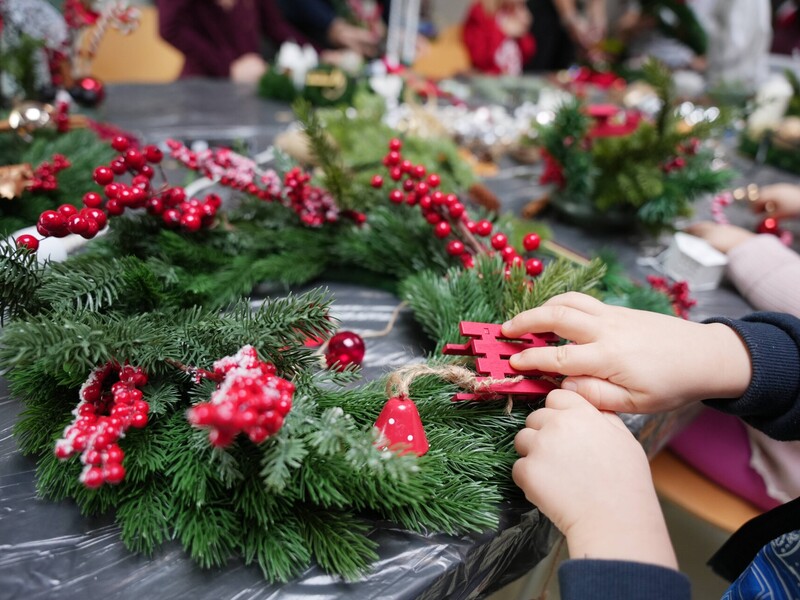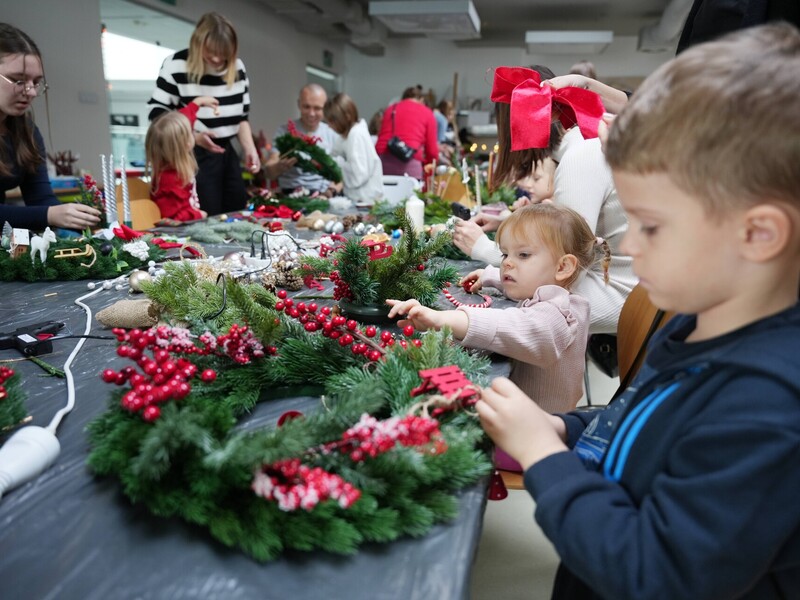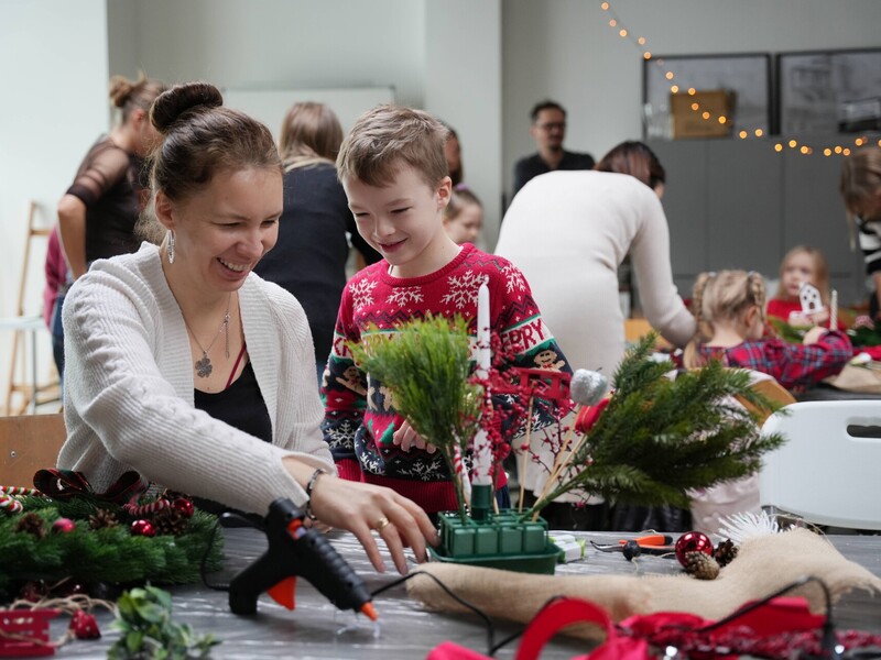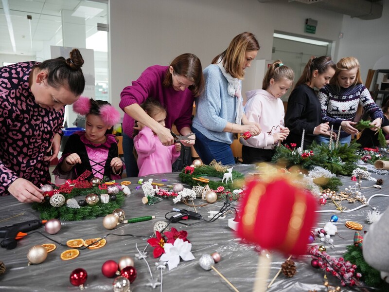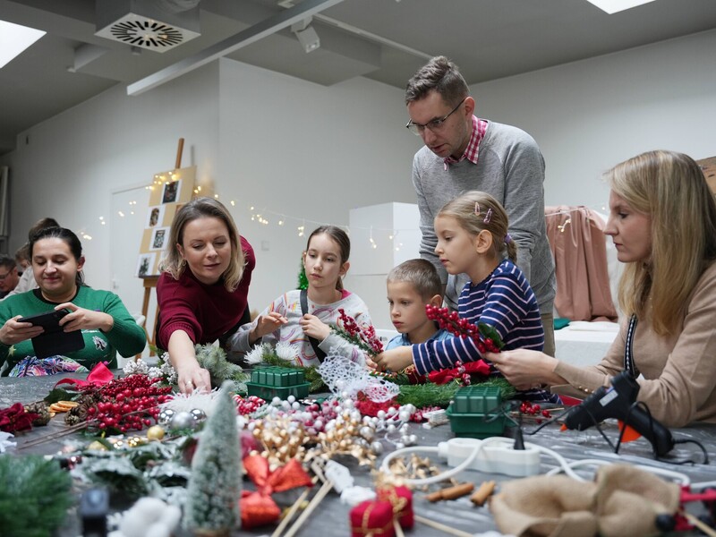 Warsztaty stały się okazją nie tylko do rozwijania artystycznych talentów, lecz także do integracji i wspólnego spędzenia czasu w przedświątecznym nastroju. Dzieci cieszyły się możliwością tworzenia, a dorośli chętnie włączali się w przygotowywanie dekoracji, pomagając i inspirując młodych uczestników.